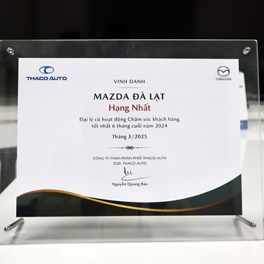 THACO AUTO vinh danh Mazda Đà Lạt - “Đại lý có hoạt động Chăm sóc khách hàng tốt nhất 6 tháng cuối năm 2024”️️.